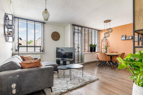 De gezellige woonkamer is het hart van het huis. Dankzij de serre geniet je hier van veel natuurlijk licht en een prachtig uitzicht op het groen rondom. De open keuken in hoekopstelling biedt veel werkruimte en heeft een praktische indeling voor dagelijks comfort. Onder de trap bevindt zich een handige kelder, perfect voor extra opslagruimte.